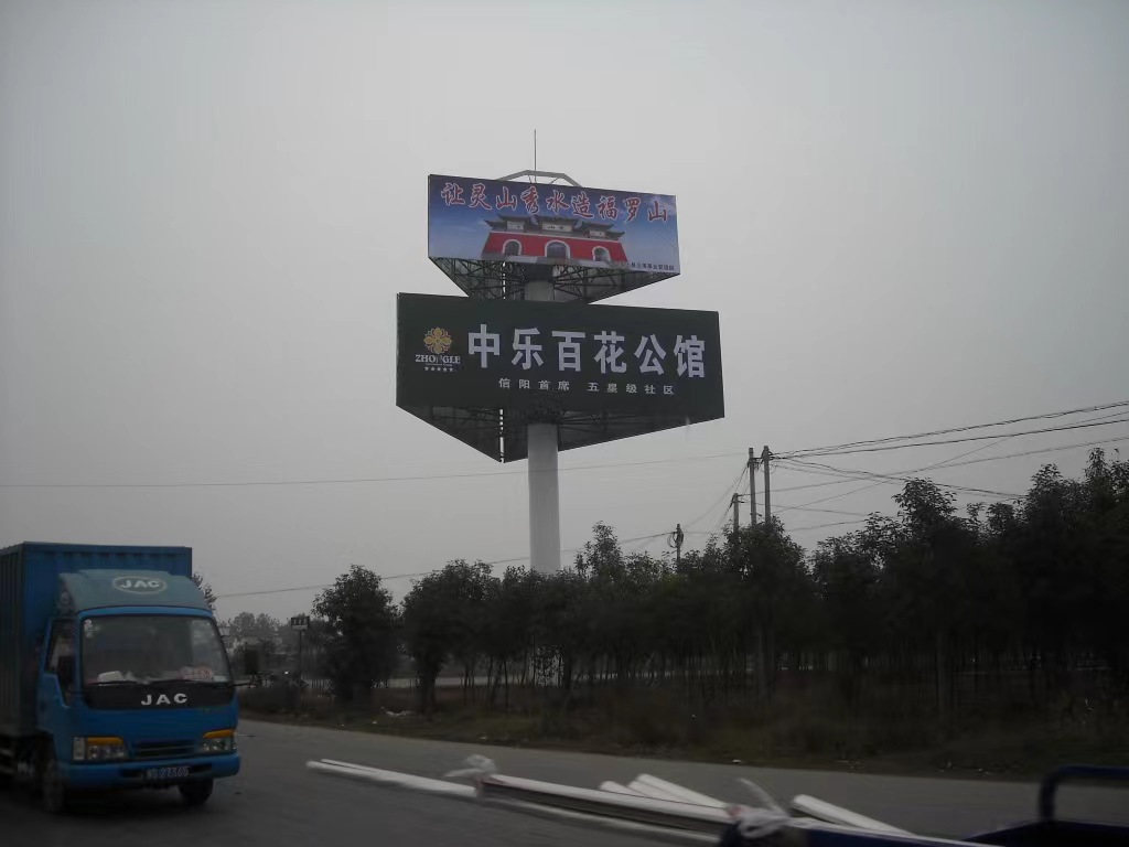 公司的主营产品:两面广告塔、三面广告塔、高速户外道旗、工地围挡广告牌、